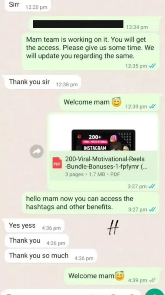As soon as you make the payment, you will get a access sheet which will contain all the bonuses along with the reel bundle.